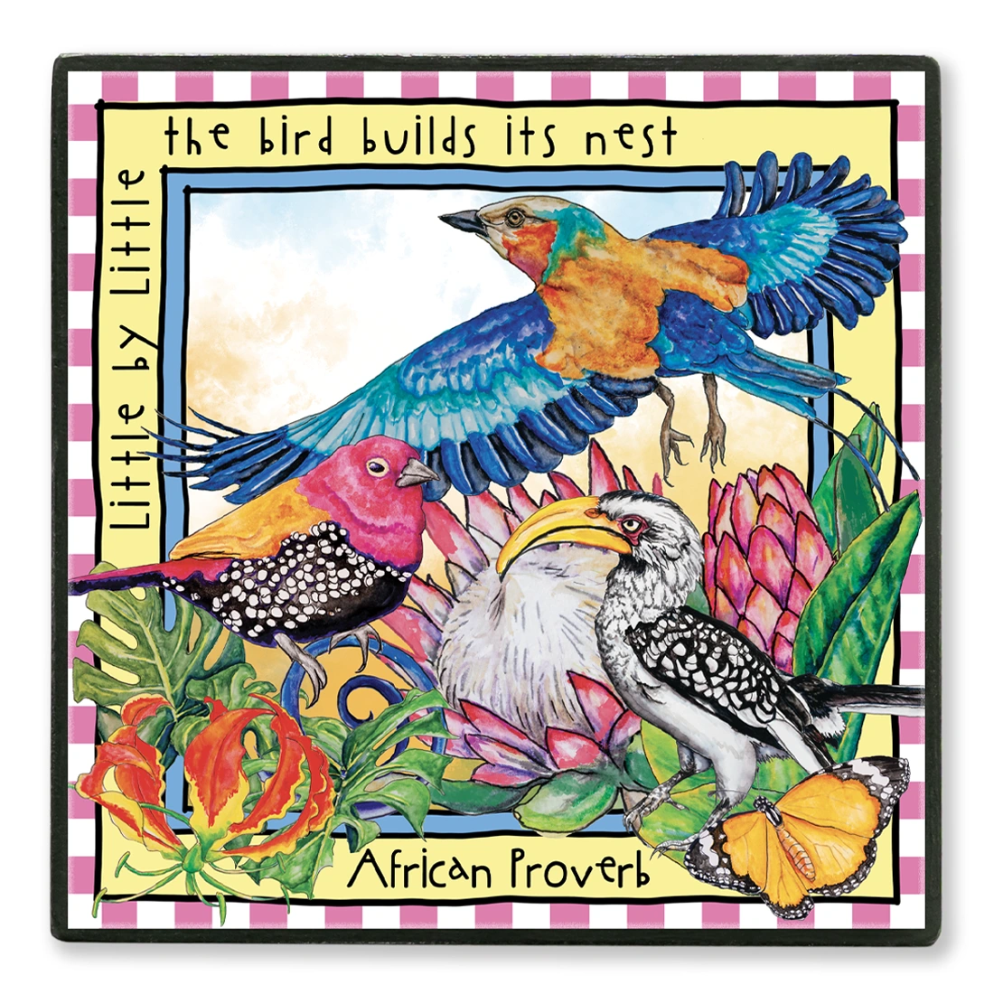 Handcrafted decoupage coasters featuring original watercolour paintings by local artist Nalah.